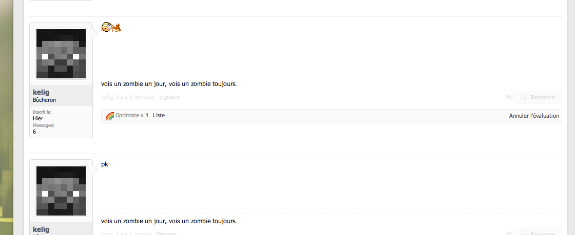 Le forum de Minecraft-France va définitivement fermer ses portes. Celui-ci restera en lecture seule mais vous ne pourrez plus y apporter de nouveaux topics. Nous vous invitons à nous rejoindre sur le Discord de Minecraft-France qui permet de présenter vos projets, discuter avec la communauté etc.. Merci à tous d'avoir fait vivre ce forum de nombreuses années. Pour nous rejoindre sur Discord, Cliquez ici