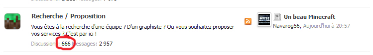 Le forum de Minecraft-France va définitivement fermer ses portes. Celui-ci restera en lecture seule mais vous ne pourrez plus y apporter de nouveaux topics. Nous vous invitons à nous rejoindre sur le Discord de Minecraft-France qui permet de présenter vos projets, discuter avec la communauté etc.. Merci à tous d'avoir fait vivre ce forum de nombreuses années. Pour nous rejoindre sur Discord, Cliquez ici
