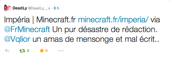 Le forum de Minecraft-France va définitivement fermer ses portes. Celui-ci restera en lecture seule mais vous ne pourrez plus y apporter de nouveaux topics. Nous vous invitons à nous rejoindre sur le Discord de Minecraft-France qui permet de présenter vos projets, discuter avec la communauté etc.. Merci à tous d'avoir fait vivre ce forum de nombreuses années. Pour nous rejoindre sur Discord, Cliquez ici