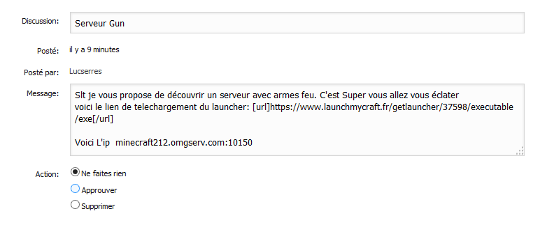Le forum de Minecraft-France va définitivement fermer ses portes. Celui-ci restera en lecture seule mais vous ne pourrez plus y apporter de nouveaux topics. Nous vous invitons à nous rejoindre sur le Discord de Minecraft-France qui permet de présenter vos projets, discuter avec la communauté etc.. Merci à tous d'avoir fait vivre ce forum de nombreuses années. Pour nous rejoindre sur Discord, Cliquez ici