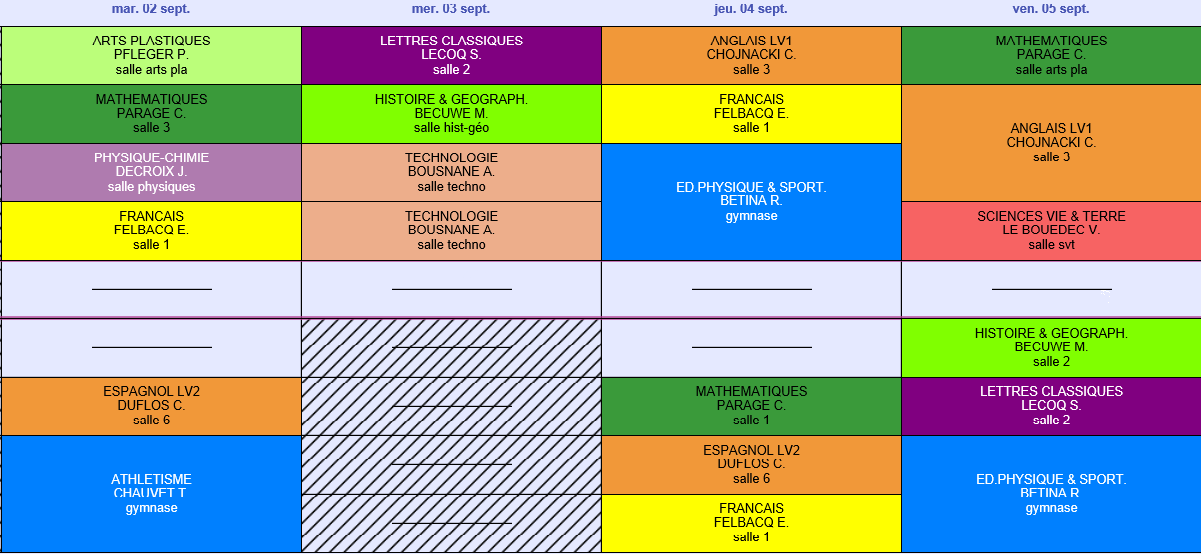3. Mon emploi du temps cette semaine au collège. Si on en juge que j'ai 1 heure d'aide au devoir de 17 à 18h chaque soir, ça me fait des journées assez remplis.