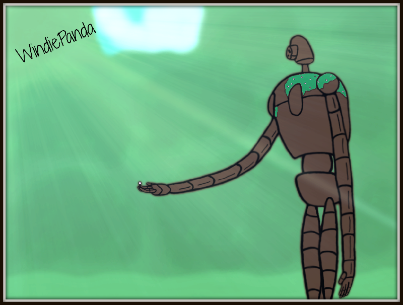 C'est un des robots de Laputa, du Château dans le Ciel, dont les Golem de Fer sont inspirés. Et oui il tient une fleur (une Poppy :3)