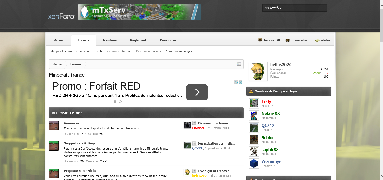 Le forum de Minecraft-France va définitivement fermer ses portes. Celui-ci restera en lecture seule mais vous ne pourrez plus y apporter de nouveaux topics. Nous vous invitons à nous rejoindre sur le Discord de Minecraft-France qui permet de présenter vos projets, discuter avec la communauté etc.. Merci à tous d'avoir fait vivre ce forum de nombreuses années. Pour nous rejoindre sur Discord, Cliquez ici