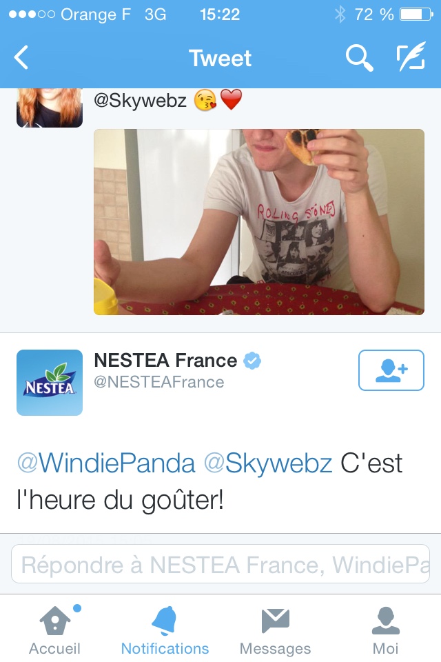 Ben Laura a pris une photo de moi en train de goûter et @GreenLenux les a taggés. Du coup ils ont répondu o/